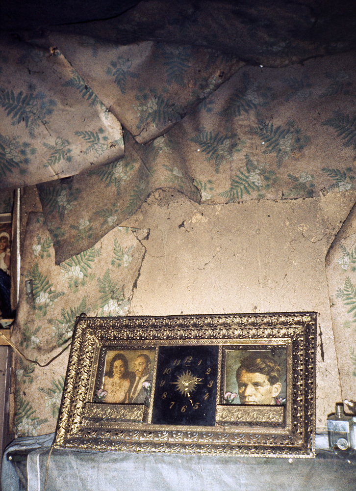 Willie Williams always sat hunched up all day staring blankly at those who once gave him so much hope, Martin Luther King and Robert Kennedy. His wife was lying in bed - sick and debilitated from hunger. They were lonesome and forsaken, forgotten by society in a world of emptiness only interrupted by the cheerless dripping of rain through the ceiling. In 1978 I saw them the last time when I came to give them the book on which the photo was used on the cover. This framed clock I saw in many homes in Georgia, but it has since disappeared along with the hope King and Kennedy inspired in the poor blacks.