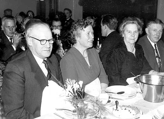 F.v. Esther Sørensens bror, Ejner Laursen, født i Vrenderup og hans kone Kirstine. Derpå Esthers søster, Kirstine Laursen. Asta Østergårds fætter Karl Johansen fra Hovborg. Bagved ses Agnus Nielsen fra Hjortkjær med cigar.