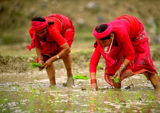 Red rice planting women
